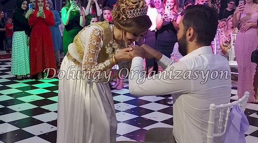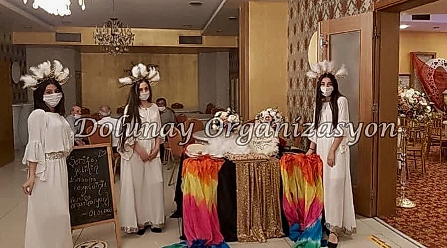 -Önce misafirlere hoşgeldin şeker ve gül suyu tutulur, kapı önünde organizasyona ait kızlar bulunur.