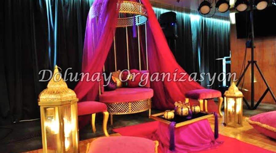 Kına organizasyonu hizmetimizde sizlere tamamen bayanlardan kurulu olan ekiplerimiz ile hizmet sunmaktayız. Eğer kına gecesi düzenlemeye karar verdiğinizde sizlere profesyonel ve İslami koşullarda kına gecesi organizasyonu sunacak firmalar arıyorsanız bizi arayabilirsiniz. Bu sayede ihtiyaçlarınızı en iyi şekilde karşılayacağız.